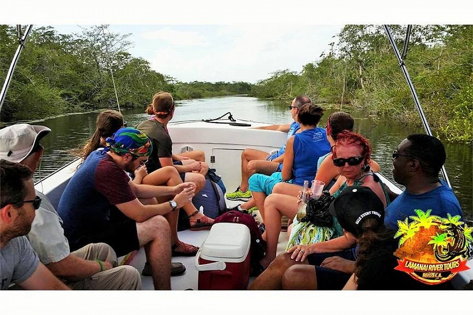 Lamanai means “submerged crocodile” in the Maya language and it’s also the name of the third largest, and possibly most interesting, archeological site in Belize. Located in the Orange Walk District, the Lamanai Ruins complex sits atop the western bluff of the New River Lagoon and is surrounded by pristine rainforest. “Getting to Lamanai is half the fun”, your exploration excursions starts in Belize City where you will be transported in a brand new air-conditioned van 1 hr North to the Orange Walk District of Belize, the drive will lead you across rivers and vast expanses of land providing you with a true Belizean Country tour.